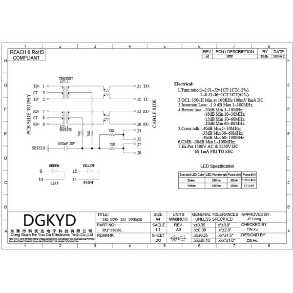 100 BASE Telecommunication RJ45 Modular Connector With Internal Transformer OEM Images |